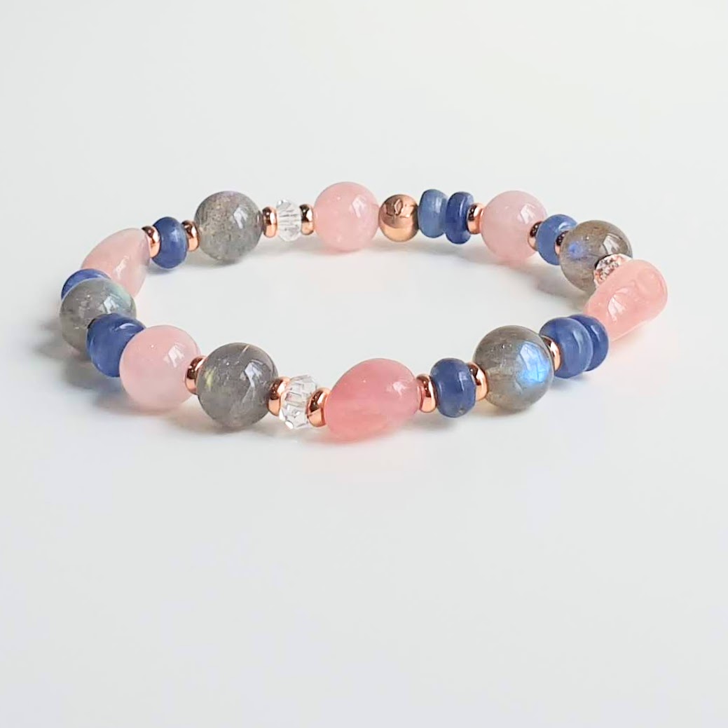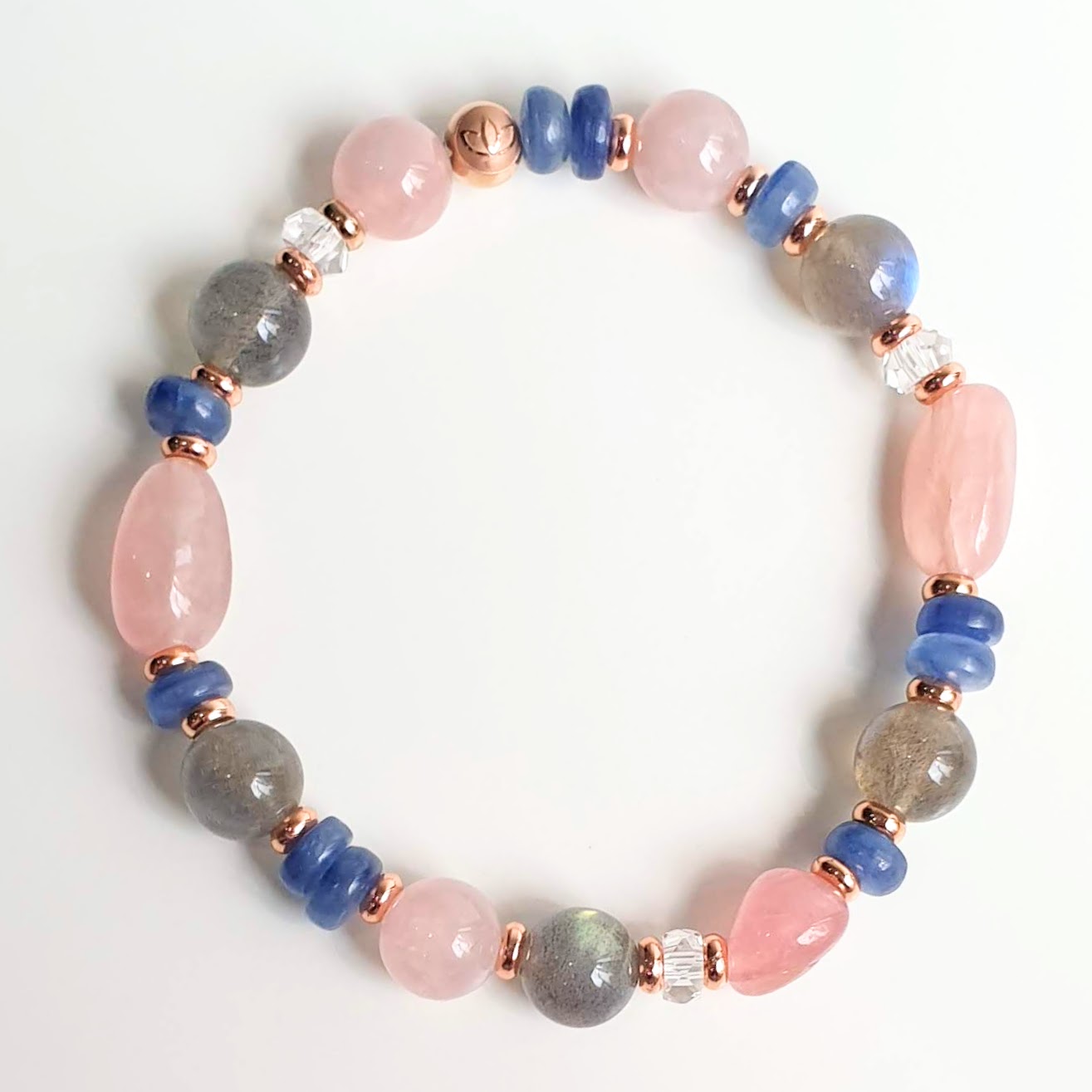 Labradorite deflects unwanted energies and forms a barrier to negative energies. It imparts strength & perseverance and banishes fears & insecurities. Wearing Labradorite crystal bracelet also helps to calm an overactive mind and energises imagination.