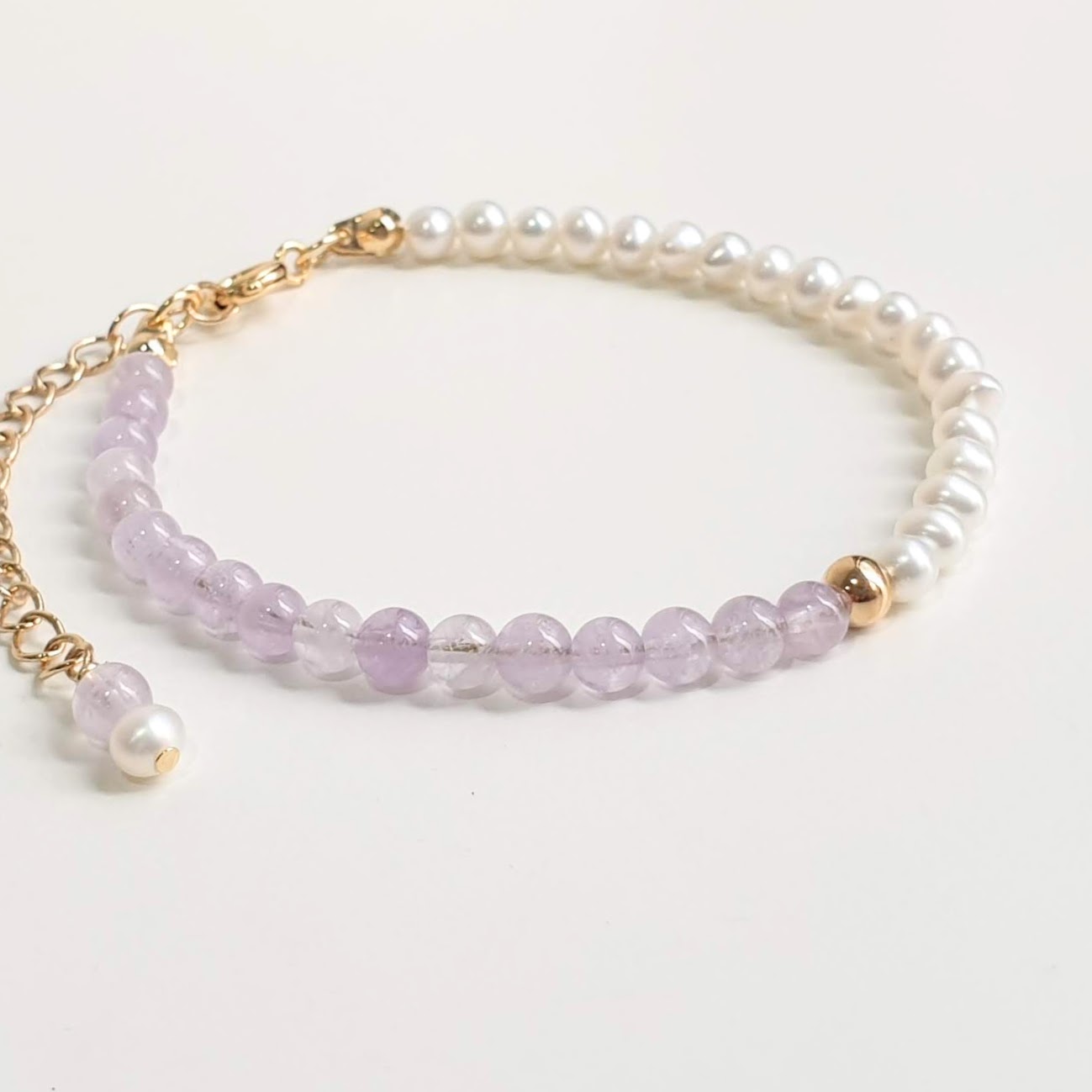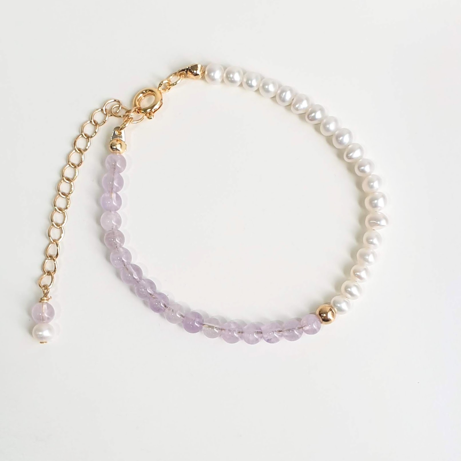 Handcrafted Natural Gemstone Bracelet with Amethyst and Pearl