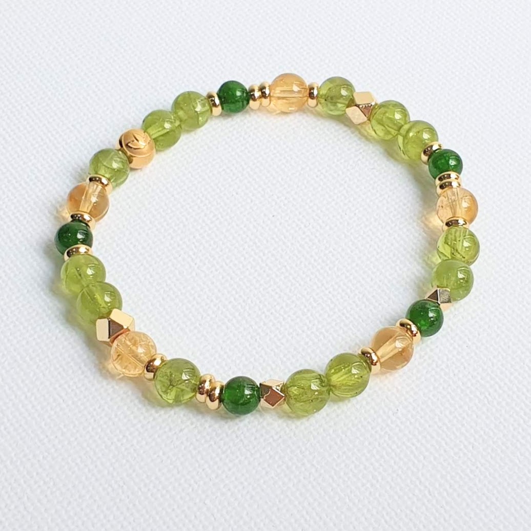 Peridot exudes positivity and warmth and helps keep one on the sunny path of life. It is an uplifting stone that promotes abundance, happiness and wealth.