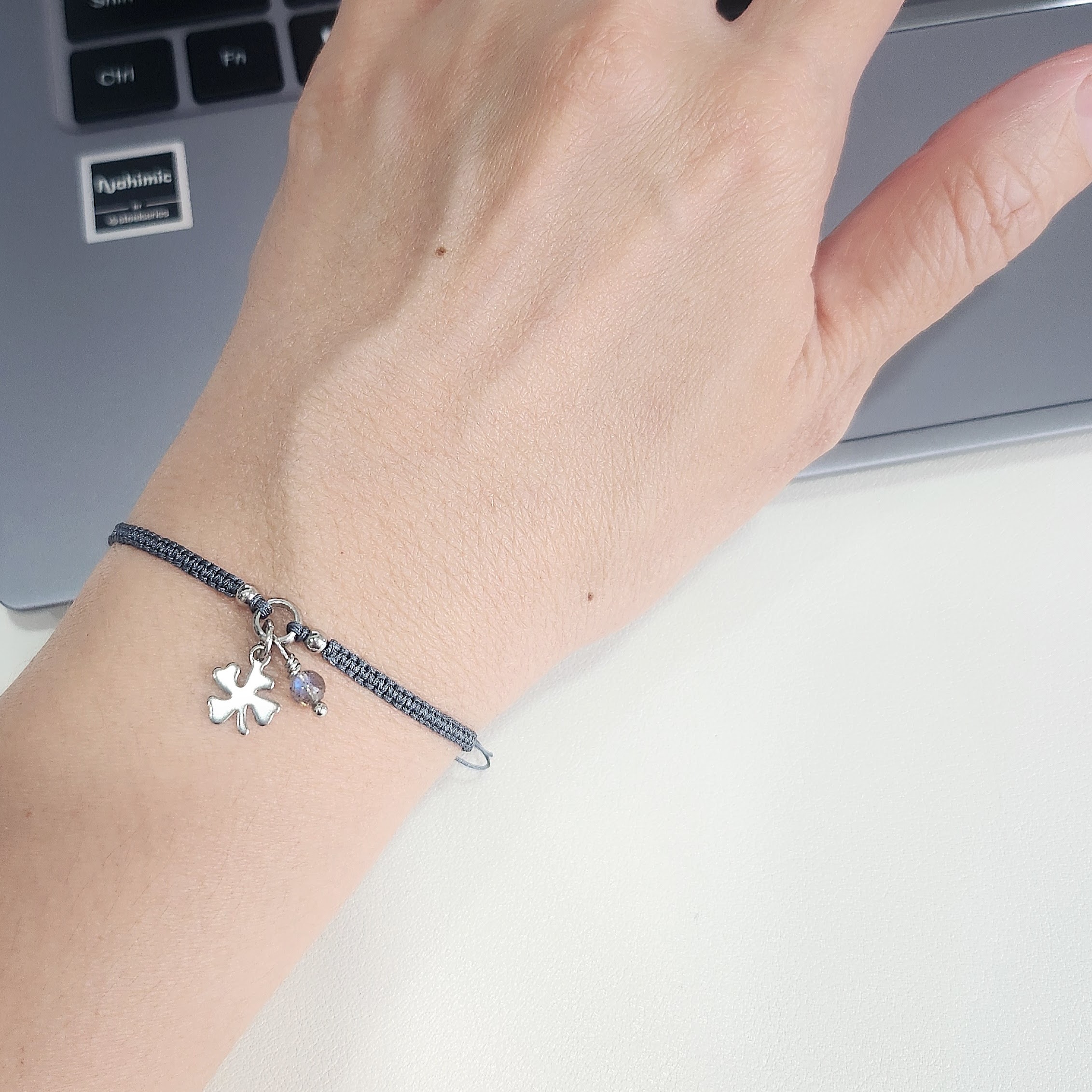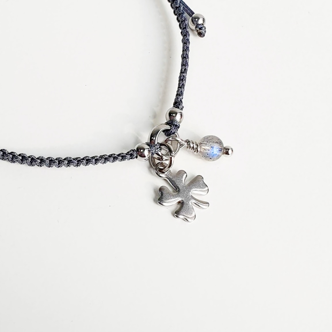Handcrafted Natural Gemstone Bracelet featuring Labradorite crystal with a lucky clover charm