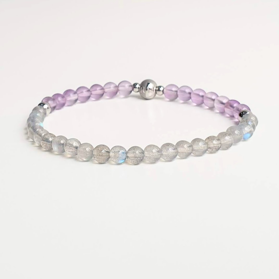 Labradorite is a mystical and protective stone. When it catches light, flashes of iridescent colour appears. It is believed to bring light and raise consciousness.